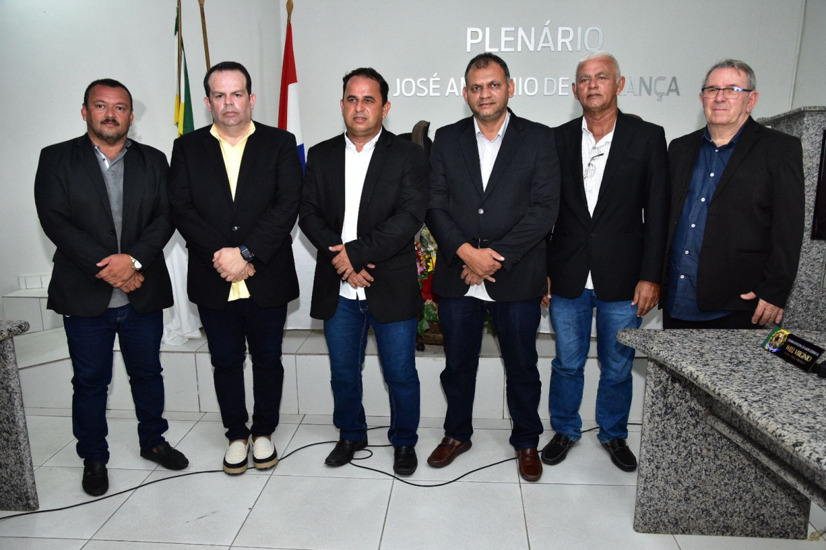 Prefeito Theobaldo Cintra (ao centro) com os vereadores presentes na sessão