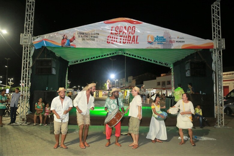 A programação cultural promovida pela Prefeitura de Penedo durante as festividades de Bom Jesus dos Navegantes valoriza artistas e grupos folclóricos locais.