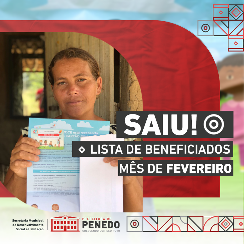 A Secretaria Municipal de Desenvolvimento Social e Habitação (SEMDSH) da Prefeitura de Penedo informa a lista de mães de família de baixa renda incluídas no Programa Criança Alagoana (CRIA).