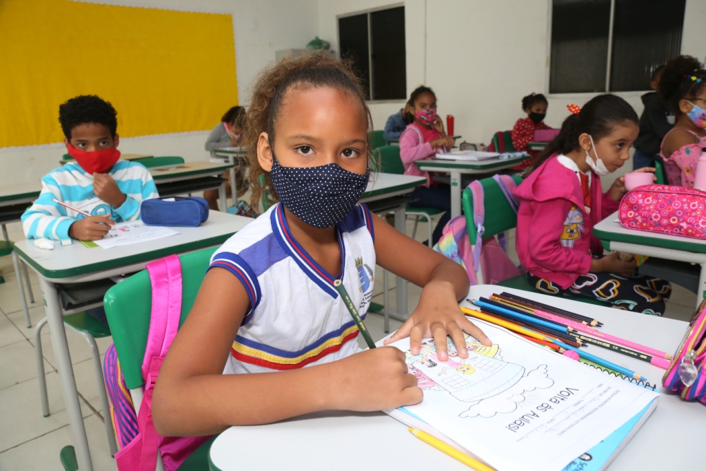 Clara Batista, uma das alunas da rede municipal, não nega a alegria em poder desfrutar do espaço escolar novamente.