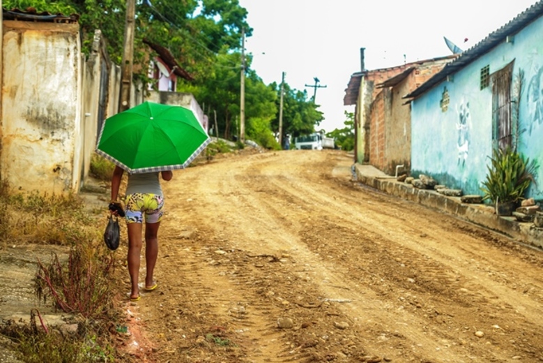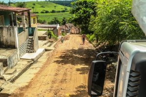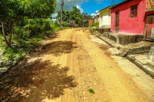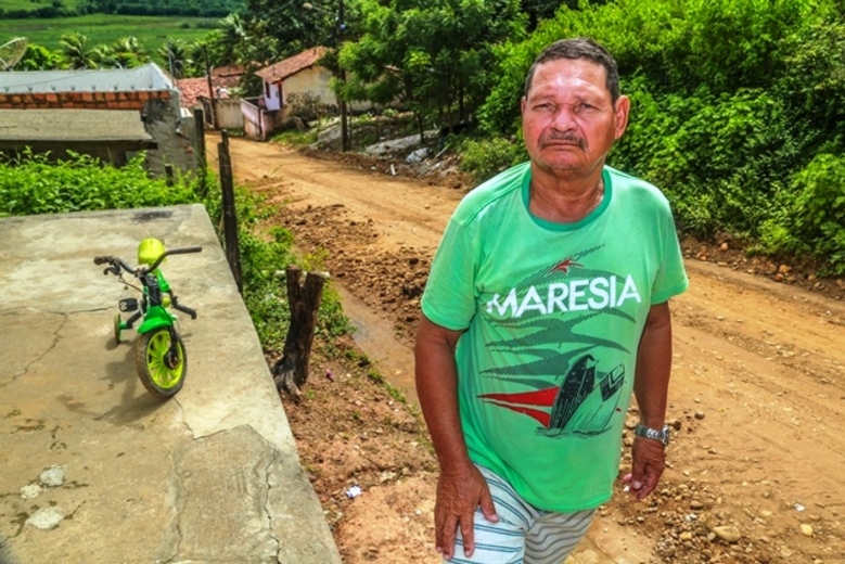 “Há pouco tempo, um entregar de botijão de gás derrapou com a moto aqui. Se não fosse a gente, o botijão ia rolar ladeira abaixo”, diz o morador da localidade que será asfaltada em breve.