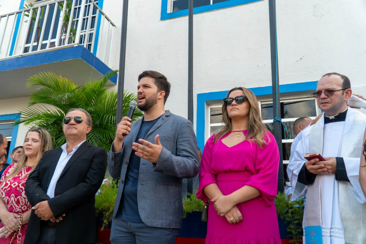 Após o hasteamento das bandeiras, ao som da Banda Municipal Maestro Antônio Basílio, o prefeito assinou uma ordem de serviço para a construção de uma Unidade Básica de Saúde (UBS), com recursos próprios, no município.
