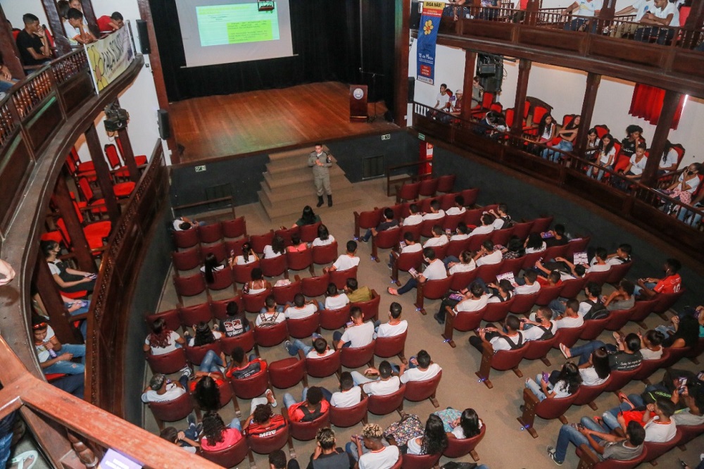 O trabalho organizado pela Secretaria Municipal de Desenvolvimento Social e Habitação (SEMDSH) levou estudantes de duas escolas da Secretaria Municipal de Educação para o Theatro Sete de Setembro nesta quarta-feira, 18 de maio.