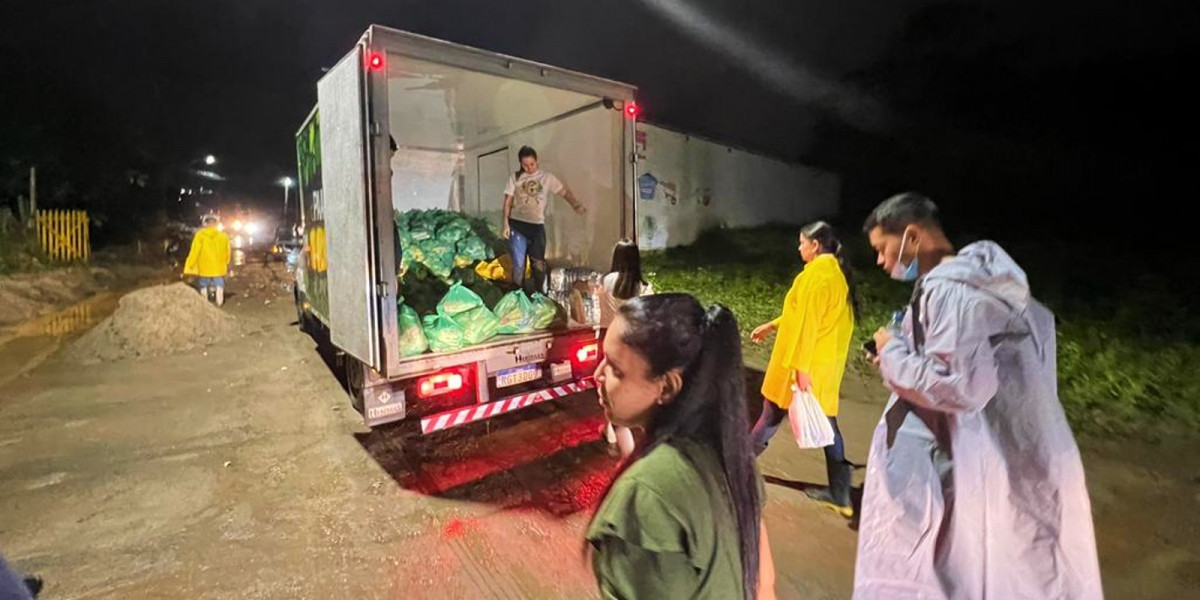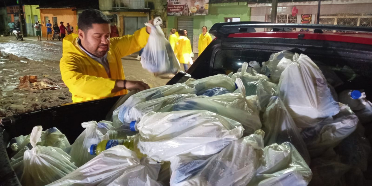 Prefeito João Victor acompanha distribuição de alimentos e de material de limpeza, entregues à população afetada pelas chuvas. Foto: Atylla Bezerra e Severino Carvalho