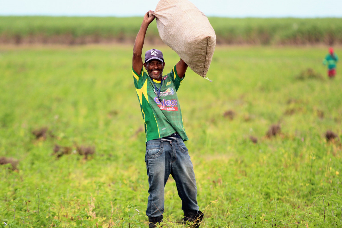 A agricultora Eurides da Silva, 60 anos, e sua família estão em festa! Pontualmente às 05h ela saiu do Alto do Cruzeiro, parte alta de Coruripe em direção à Fazenda Central, na região de Pindorama, com ela, parte da sua família composta por 13 pessoas, entre netos, filhos e nora. Dona Eurides é só alegria por fazer parte das mais de 700 famílias que irão colher média 300 quilos de feijão.