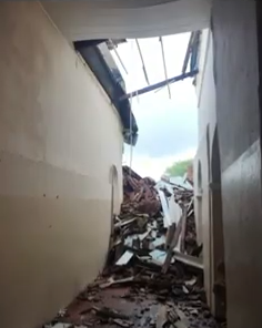 A torre da Igreja, parte da fachada, do telhado e uma parede interna, desabaram na tarde da última quarta-feira (20). Chovia bastante quando a estrutura desmoronou. Além da Defesa Civil municipal, uma equipe de engenharia foi até o local para fazer uma vistoria e avaliar as causas do desabamento.