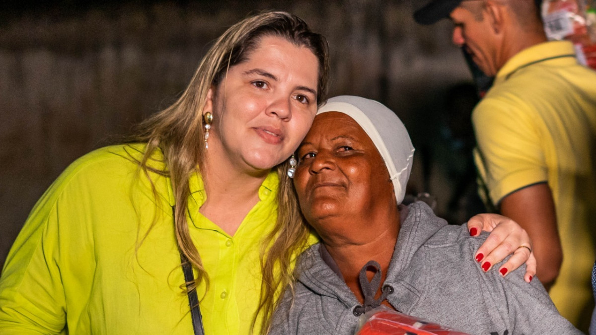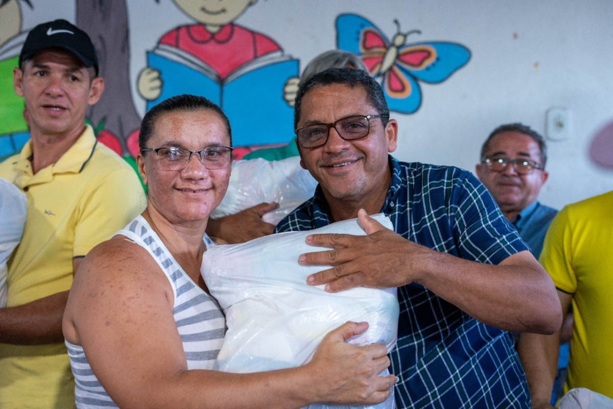 Marcela Santos realizou a entrega da cesta acompanhada da secretária de Assistência Social, Luziene Santos, de técnicos da pasta municipal, além de outros secretários municipais, vereadores e dos líderes políticos, Marcos Santos e Juliana Kummer.