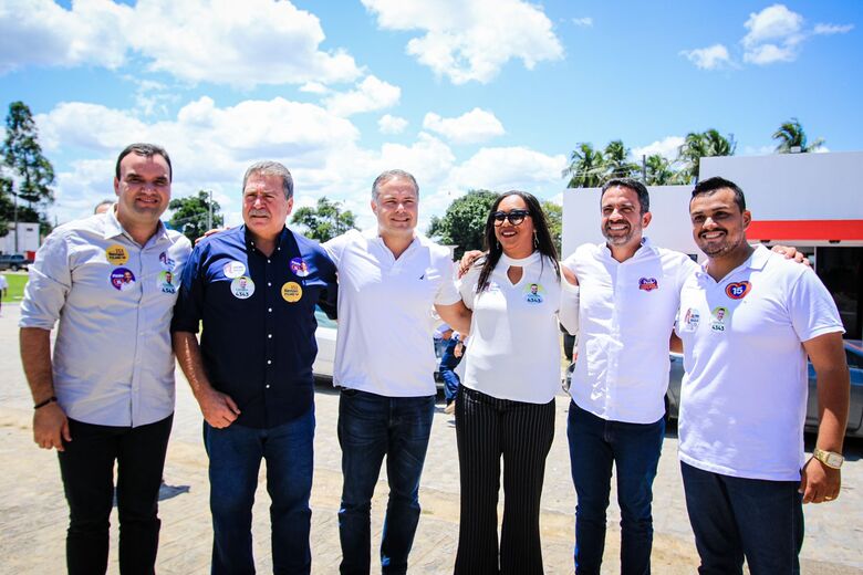 O ex-governador e candidato ao senado, Renan Filho (MDB), o candidato a deputado estadual Remi Calheiros (MDB) e o candidato a deputado federal Luciano Amaral (PV), também participaram da solenidade.