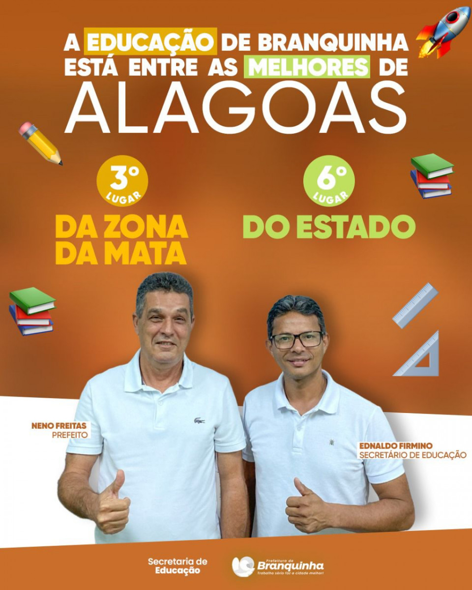 Fruto de muito investimento, a educação de Branquinha só tem avançado, e os resultados divulgados pelo Governo Federal, na última sexta-feira (16), comprovam isso. O ensino municipal alcançou posições inéditas no ranking estadual do Índice de Desenvolvimento da Educação Básica (Ideb), referentes ao ano de 2021, onde conquistou o 3º lugar entre os municípios da zona da mata e o 6º lugar no estado.