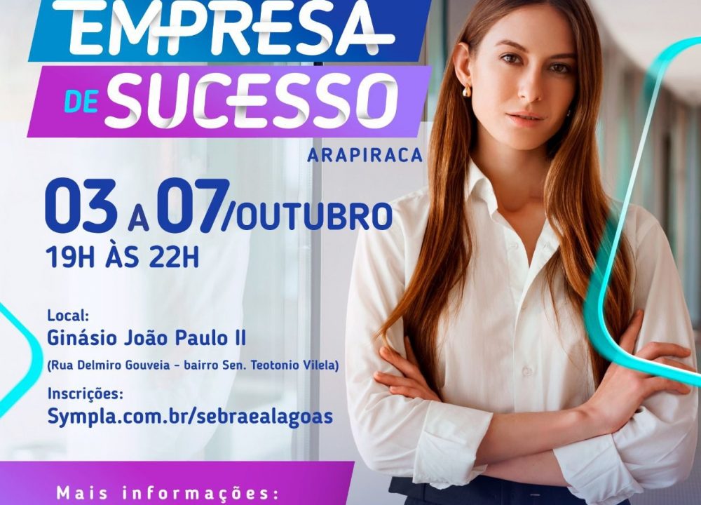A Prefeitura de Arapiraca, por meio da Secretaria Municipal de Desenvolvimento Econômico e Turismo, em parceria com o Serviço Brasileiro de Apoio às Micro e Pequenas Empresas (Sebrae) realizará entre os dias 3 e 7 de outubro, o curso Empresa de Sucesso.