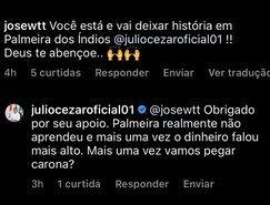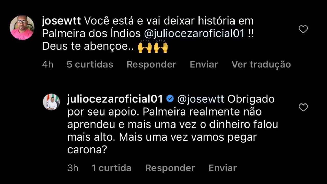 O vídeo foi publicado nas redes sociais do prefeito aparentando estar revoltado pelo resultado das urnas no município, além de responder aos comentários dos internautas. "Palmeira realmente não aprendeu", disse ele.