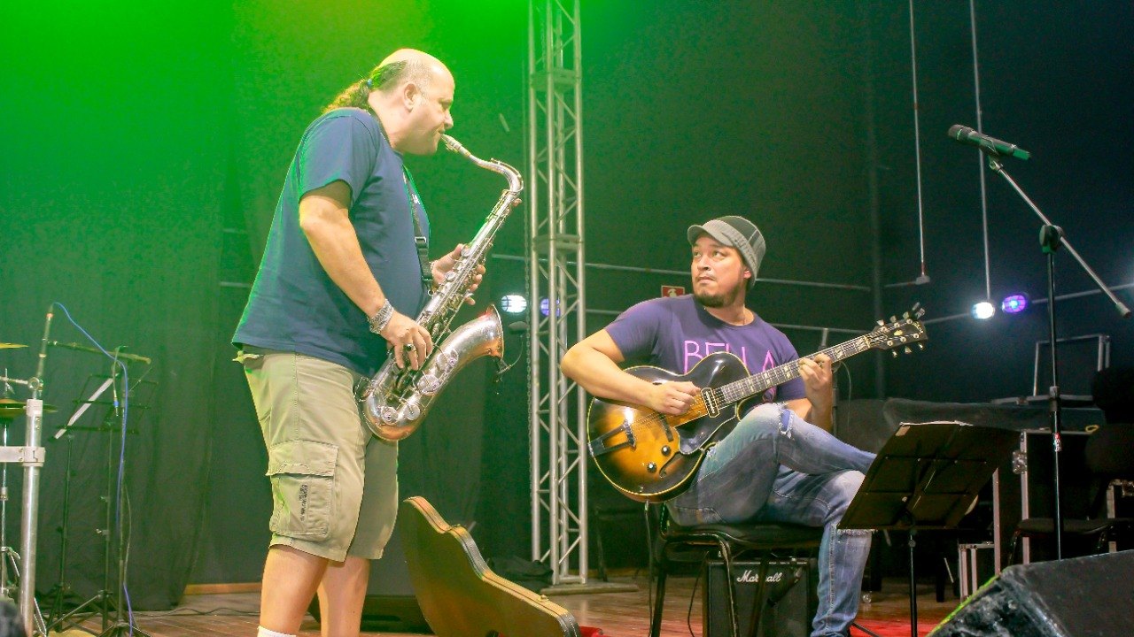 Antes do shows da Mostra, o saxofonista Derico Sciotti e o guitarrista Ricardo Lopes fizeram um concerto aberto que extasiou a plateia e prendeu os olhares. Canções dos artistas Pixinguinha e João Gilberto compuseram o repertório do duo e, a cada música, Derico explicava o contexto e o cenário sociopolítico e a história de sua criação.