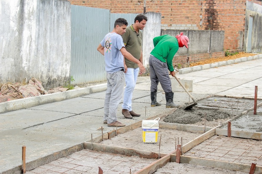 A obra motiva até os moradores a melhorarem suas casas. É o que Francisco Caldas de Assis faz no imóvel que finalmente está em obras porque, finalmente, a rua onde mora terpa condições de tráfego em qualquer época do ano.