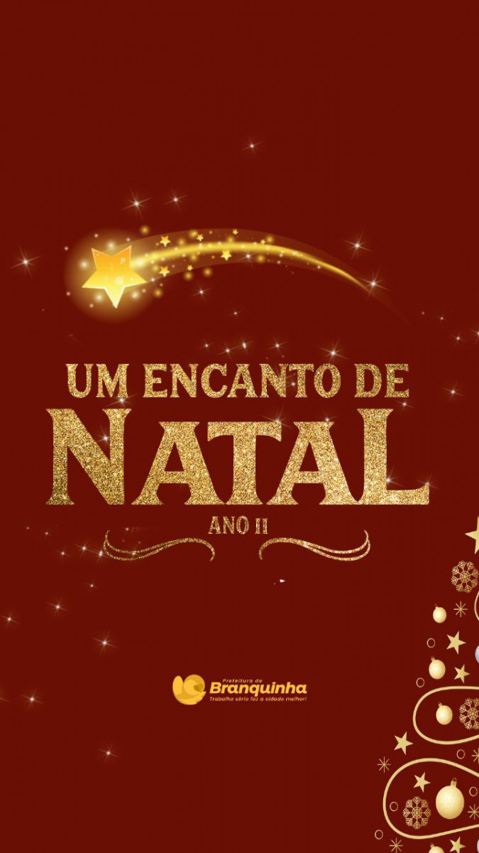 Com muitas cores, emoção e magia, a prefeitura de Branquinha anuncia a programação do projeto ‘Um Encanto de Natal’. Em sua segunda edição, o evento inicia no próximo dia 3 com diversas atrações e a chegada do Papai Noel; e segue até o dia 22 com shows artísticos.