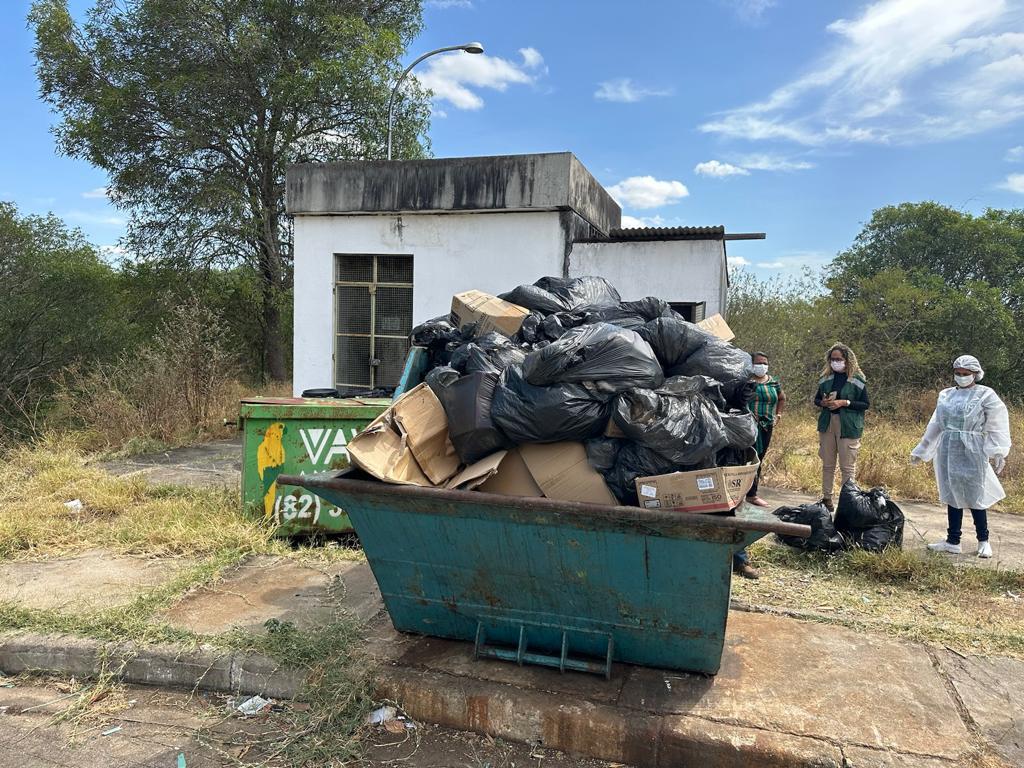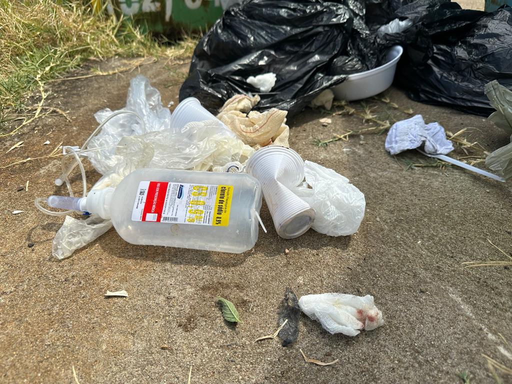 Durante a fiscalização foi constatado também que resíduos contaminados (a exemplo de gazes e algodão com sangue, luvas, recipientes de soros e ataduras) estavam sendo descartados e armazenados, em diversos setores da unidade, no lixo comum.
