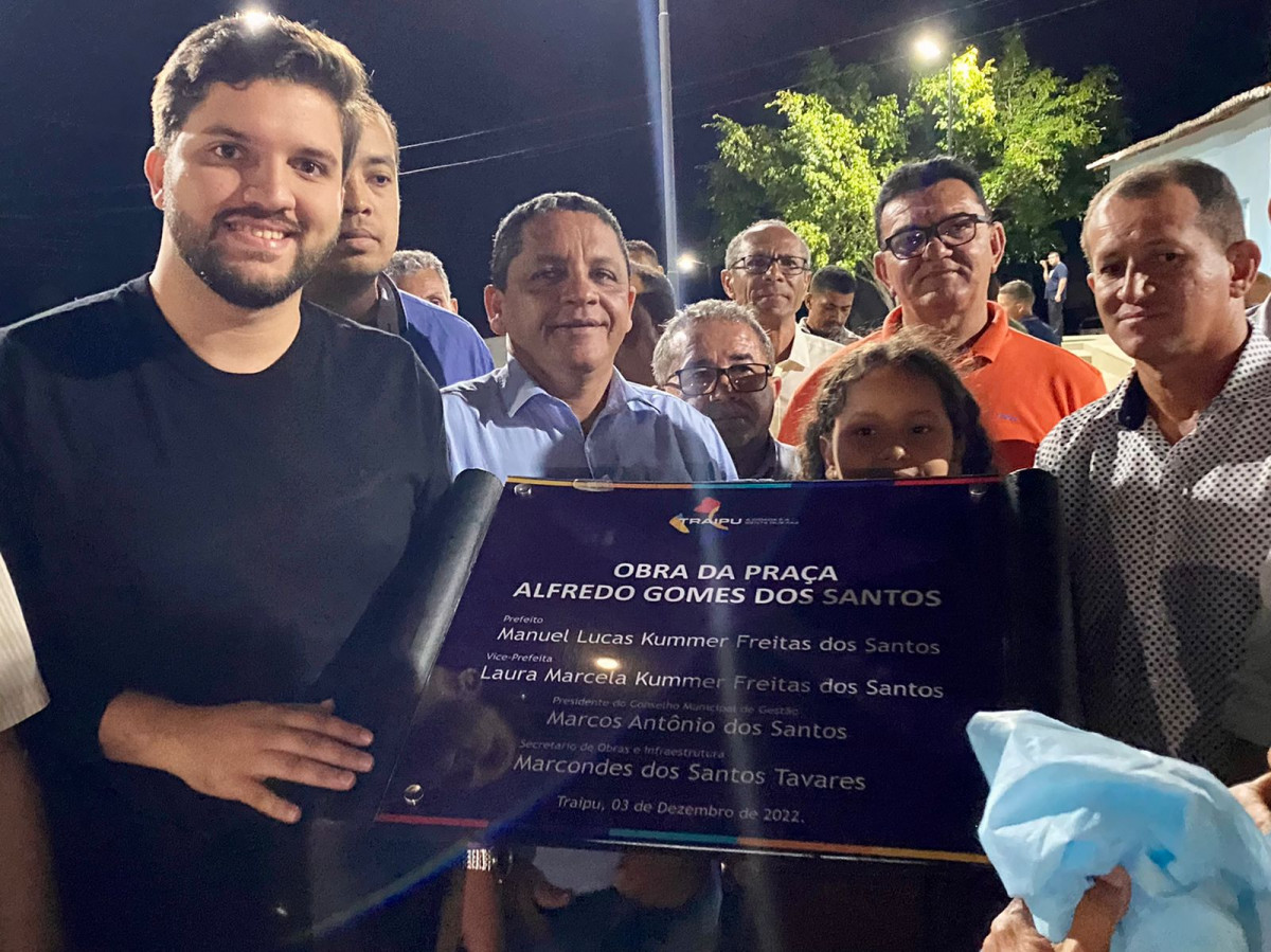 O prefeito de Traipu, Lucas Santos, que entregou a praça à população, ao lado dos pais, Marcos Santos e Juliana Kummer, falou sobre a inauguração de mais uma grande obra de sua gestão.