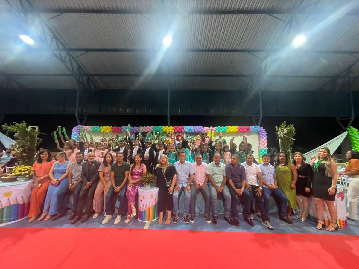 A exemplo da zona rural, a prefeitura preparou um lindo momento, onde os formandos – que estavam lindos com seus trajes padronizados e super bem confeccionados, receberam durante a solenidade, o tradicional capelo e o canudo, contendo o diploma, que simboliza a passagem da educação infantil para as séries iniciais do Ensino Fundamental, além de uma placa personalizada com a foto de cada um deles.