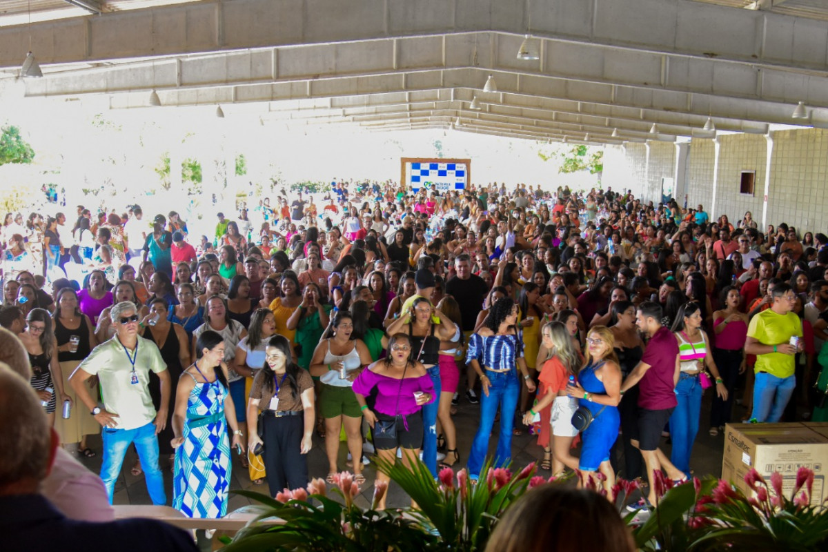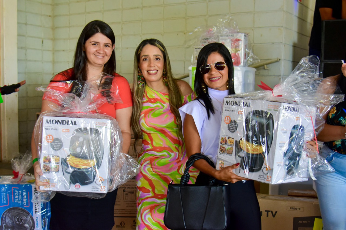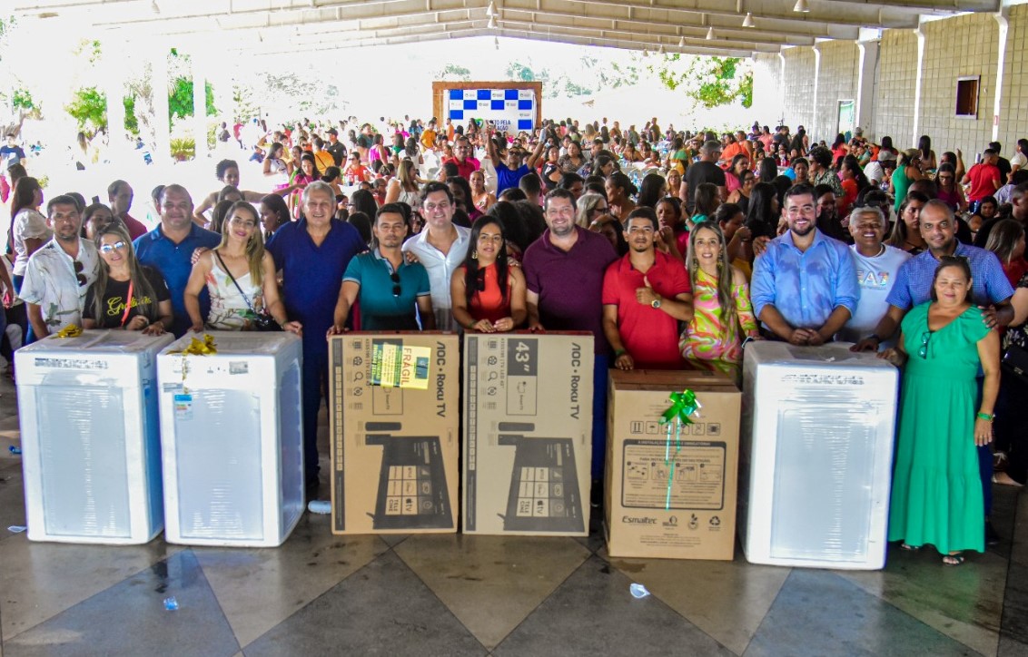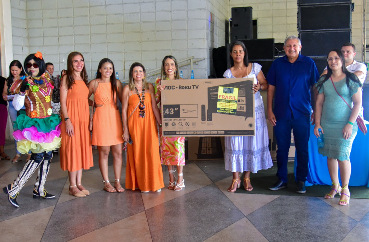 Para celebrar as conquistas alcançadas em pouco mais de um ano, nesta quinta-feira (22), uma grande confraternização reuniu todos os servidores da Secretaria de Educação no Clube da Afusco, em Pontal de Coruripe. No encontro, sorteio de prémios: 10 kit’s de eletrodomésticos, 2 ventiladores, 2 tv’s de 43’’, 2 tv’s de 32’’, 21 air fryer’s, 4 fogões, máquinas de lavar, 1 gelágua, micro-ondas e 14 liquidificadores. Além de um almoço para mais de mil servidores. A animação ficou por conta do comediante Poderosa e as atrações musicais foram Raí Ramalho e Wellington Costa.