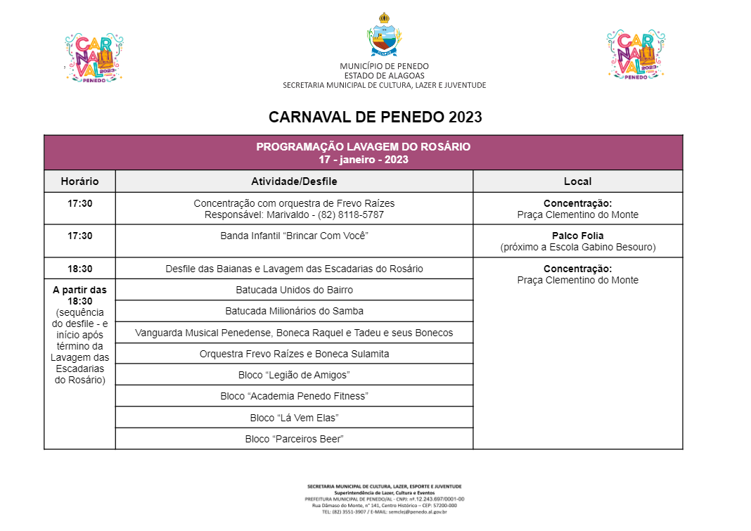 A festa que une tradição e alegria é promovida pela Prefeitura de Penedo, por meio da Secretaria Municipal de Cultura, Lazer e Juventude (SEMCLEJ).