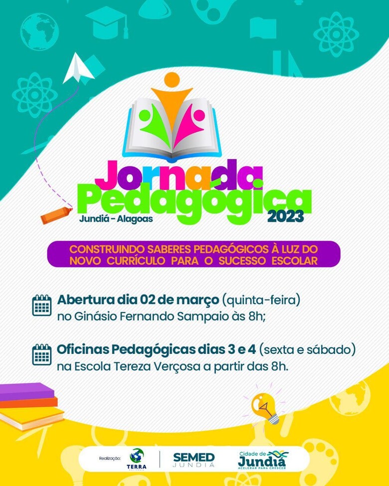 Nos dias 2, 3 e 4 de março, o Instituto Terra Solidária e a Prefeitura de Jundiá, por meio da Secretaria de Educação, promoverão a Jornada Pedagógica 2023. Com o tema ‘Construindo saberes pedagógicos à luz do novo currículo para o sucesso escolar’; Professores e coordenadores pedagógicos, terão três dias de imersão e abordagens de importantes assuntos que poderão ser colocados em prática nas escolas.