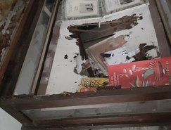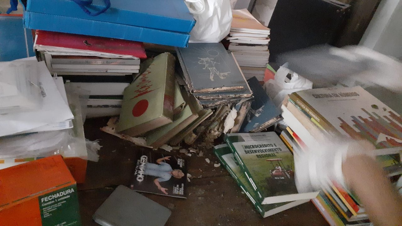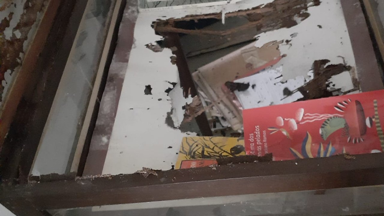 Pior: o acervo da Casa de Graciliano que deveria estar acondicionado em local apropriado para sua preservação praticamente foi destruído como revela as fotografias desta matéria, fornecidas por um denunciante à redação, que indignado resolveu revelar o crime de Julio Cezar contra a cultura do povo palmeirense e que merece a reprimenda exemplar das autoridades públicas.