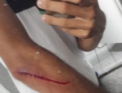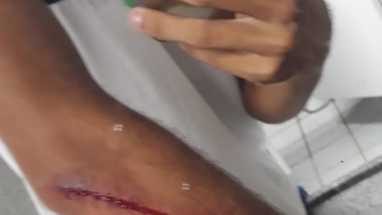 O adolescente apresentava um grande corte na região do cotovelo, e, desde então, uma foto do ferimento está circulando nas redes sociais.
