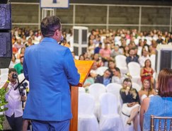 O presidente do Cosems-AL Rodrigo Buarque agradeceu ontem à noite na abertura oficial do 7⁰ Congresso Estadual do Cosems-AL, em Piranhas, o apoio irrestrito dos secretários, técnicos e personalidades da Saúde das três esferas de governo presentes ao evento, bem como a deputados, prefeitos e vereadores que têm sido parceiros do Cosems-AL na busca por políticas públicas que favoreçam o SUS. Ele destacou que tem o melhor Cosems-AL do Brasil pela disposição da equipe em encabeçar um evento de grande porte e agradeceu aos 40 profissionais de Piranhas que também trabalharam de forma incansável no evento, que reuniu quase 900 congressistas de todo o país.