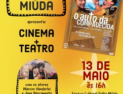 Na estreia, o cineclube exibe o filme brasileiro O Auto da Compadecida (2000), dirigido por Guel Arraes e disponível na GloboPlay. O filme é inspirado na peça teatral homônima de 1955, do escritor paraibano Ariano Suassuna. Haverá apresentação ao vivo dos atores Marcos Vanderlei e Jane Nascimento, além de distribuição de ovos de páscoa para as crianças do Riachinho.