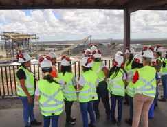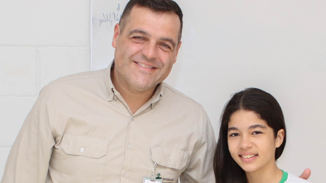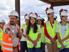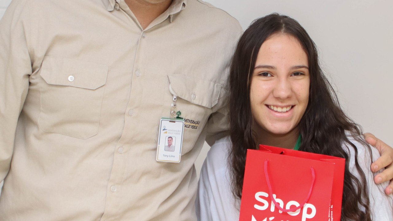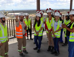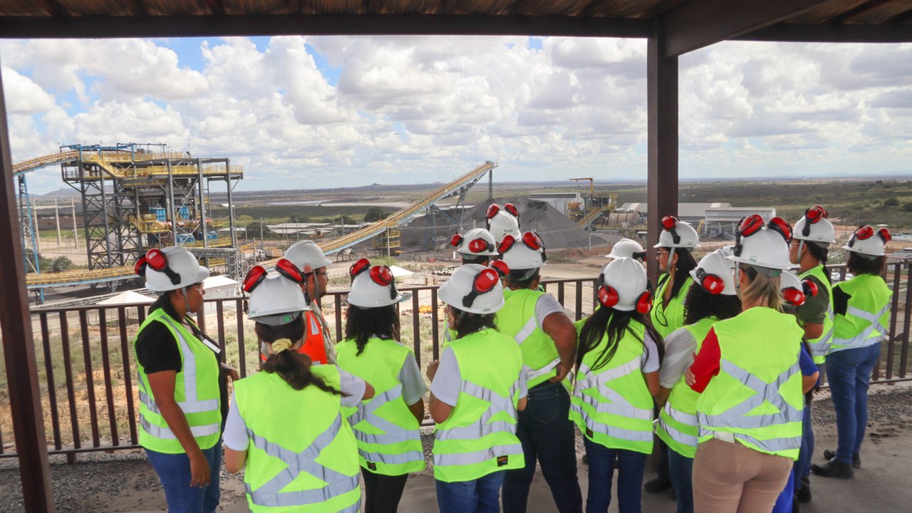 Depois de premiadas, acompanhadas das gestoras e professoras da escola, elas conheceram de perto a MVV, indo até o totem instagramável no platô da Britagem, com uma vista panorâmica da Mina Serrote.