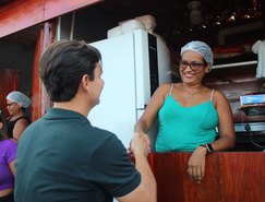 A comerciante Gil 'Dona do Pedaço', como ela gosta de ser chamada, comercializa alimentos e bebidas na localidade desde 2012, do tempo que as barracas ainda eram de zinco e telha de amianto, sem estrutura nenhuma. Neste sábado, além de abrir oficialmente com a nova estrutura, a comerciante também recebeu o documento que oficializa como seu o ponto para comercializar seus produtos.