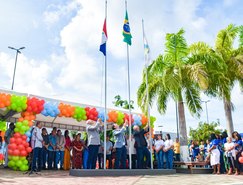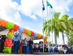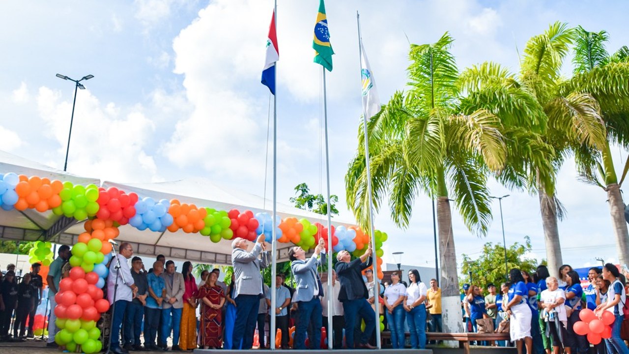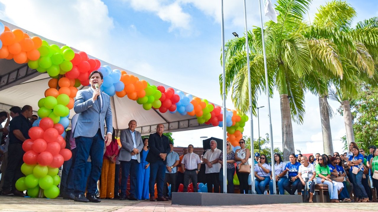 As comemorações pelo aniversário começaram com o hasteamento dos pavilhões na Praça Dr. Castro Azevedo. Logo após os protocolos oficiais, o prefeito Marcelo Beltrão ao lado do vice José Enéas lançou e fez a entrega do Cartão às famílias beneficiárias.