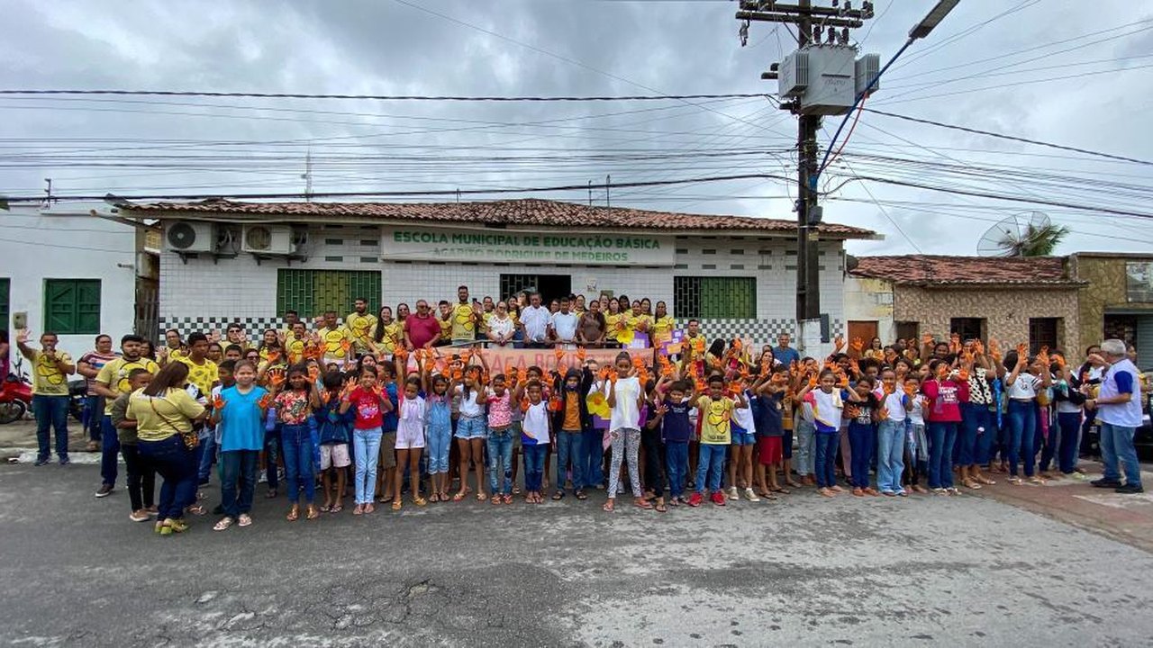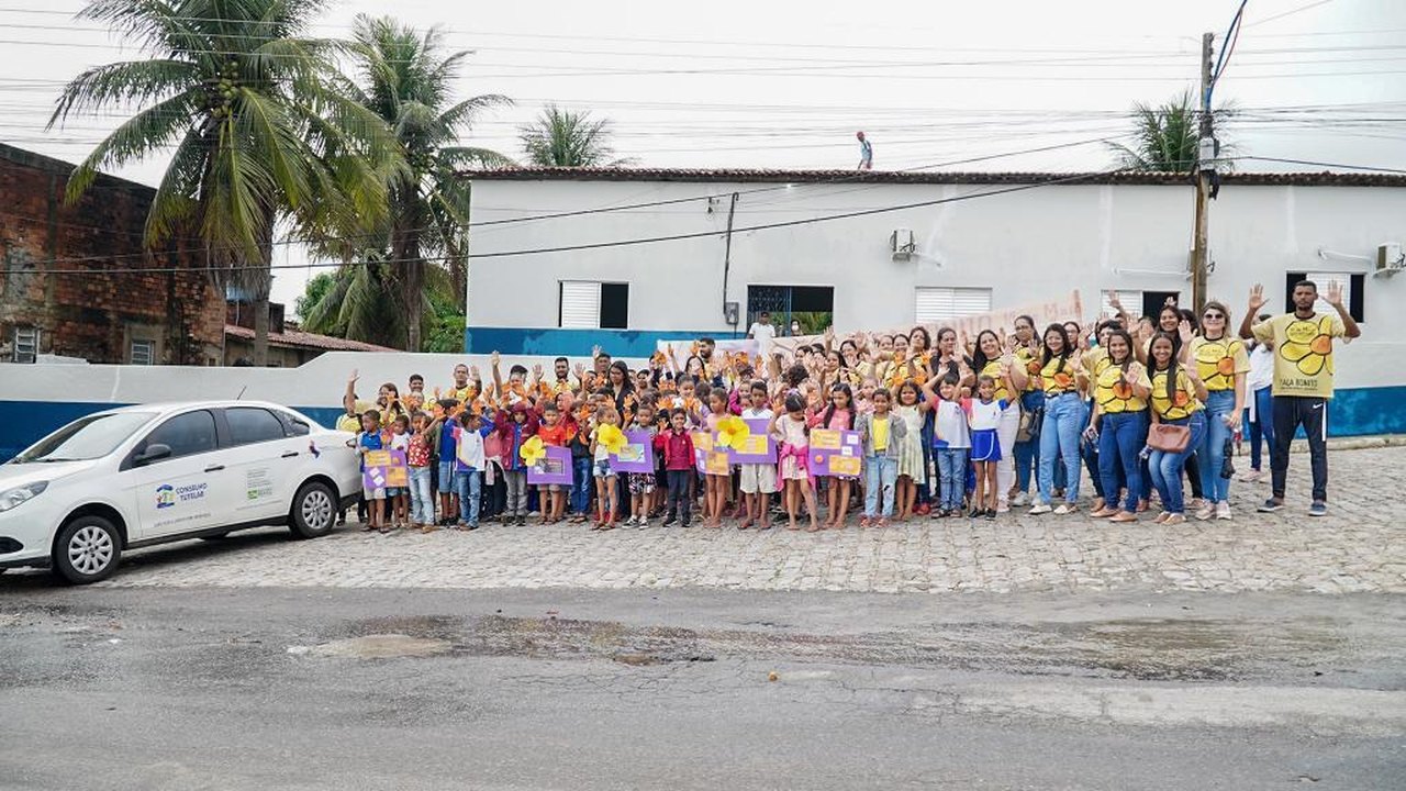 Equipes da Secretaria Municipal de Assistência Social, do Centro de Referência de Assistência Social (Cras), da Secretaria Municipal da Criança, do Adolescente e do Conselho Tutelar e da Secretaria de Educação realizaram a caminhada junto com estudantes pelas principais ruas da cidade.