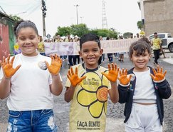Levando cartazes, exibindo a flor símbolo da campanha nacional e mostrando as mãos pintadas com a cor laranja, a caminhada iniciou no Portal da cidade e seguiu até a Prefeitura, acompanhada por moradores por todo o trajeto.