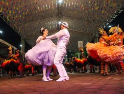 Uma das novidades da Arena do Forró que está 100% coberta é o “Brink Parque” onde o público infantil pode participar das atividades lúdicas nos brinquedos destinado às crianças, durante os 5 dias das noites juninas. Na Arena do Forró, as apresentações culturais/artísticas, iniciaram às 20 horas.
