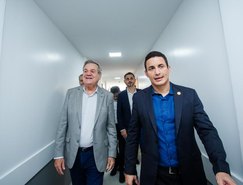 O governador em exercício Ronaldo Lessa e o secretário de Segurança Pública, Flávio Saraiva, visitaram nesta segunda-feira (23) as obras do novo prédio da Central de Flagrantes, que vai oferecer melhor atendimento e estrutura tanto para os cidadãos quanto para policiais, advogados e imprensa, promovendo mais qualidade nos serviços e inclusão social. A obra está na fase final e deve ser entregue em meados de julho. A central fica localizada na av. Durval de Góes Monteiro (entre a Ultragás e Iveco), no Tabuleiro dos Martins.