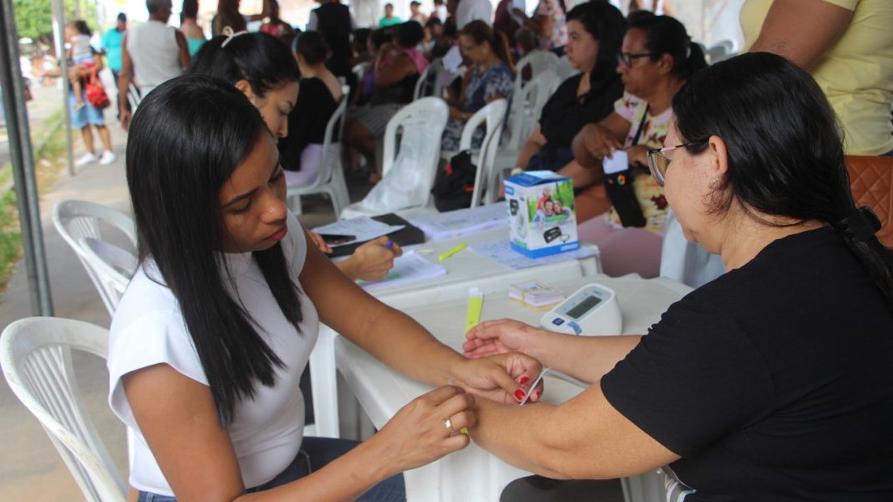 A equipe da unidade móvel da SEMS disponibiliza consulta com médico e enfermeiro, educação em saúde na Odontologia e realiza testes rápidos (Covid-19, sífilis, HIV e hepatite), com 204 feitos no mutirão desta quinta, 23.