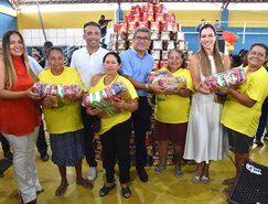 Nesta segunda-feira (4), o prefeito Theobaldo Cintra, realizou um evento em comemoração ao Major Feliz especial de Natal, com a participação de todos os beneficiários. Na ocasião, foram distribuídas as 1.700 cestas nutricionais, além de panetones para as famílias que fazem parte do Major Feliz.