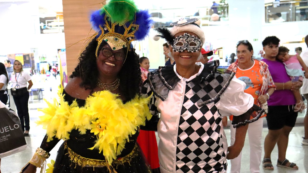 Bloco do Sesc Alagoas formado por pessoas idosas realiza desfile em shopping de Maceió