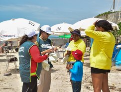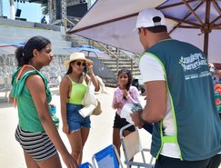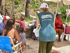 Na ocasião, foram abordadas formas de realizar a coleta do material produzido pelos barraqueiros e banhistas e também entregues sacos de coleta de resíduos.