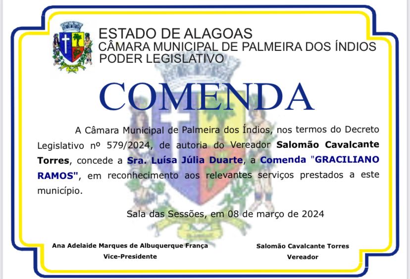 Em uma ação simbólica que reflete as dinâmicas políticas locais, Julia Duarte, pré-candidata à prefeitura, será agraciada com um título honorífico em uma cerimônia que destacou sua contribuição e dedicação à comunidade. A homenagem foi uma iniciativa de Salomão Torres, líder do governo, visando homenagear Duarte de forma graciosa, ao mesmo tempo em que procura agradar o prefeito-imperador Julio Cezar.