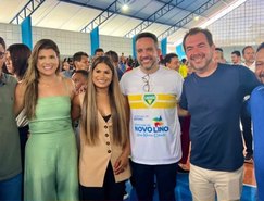 A prefeita Marcela Gomes recebeu neste domingo, 24, em Novo Lino, diversas autoridades políticas de Alagoas para a inauguração de duas importantes obras: a creche Cria e o ginásio de esportes. Ao lado de seu secretariado, Marcela Gomes recepcionou o governador Paulo Dantas, o senador Renan Calheiros, deputado federal Luciano Amaral e o deputado estadual Gilvan Barros, para celebrar um momento tão importante para a população de Novo Lino.
