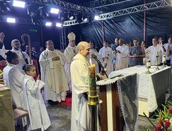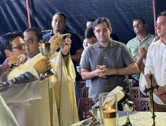 E se transformou em um momento de profunda fé e devoção dos jundiaenses. A missa comemorativa aconteceu ao ar livre, ao lado do mirante, e foi celebrada pelo arcebispo metropolitano de Maceió, Dom Beto. O evento contou com a presença do padre Joãozinho, que conduziu um show católico emocionante, protegendo os fiéis sob tendas e proporcionando uma noite inesquecível de muita emoção para todos os presentes.