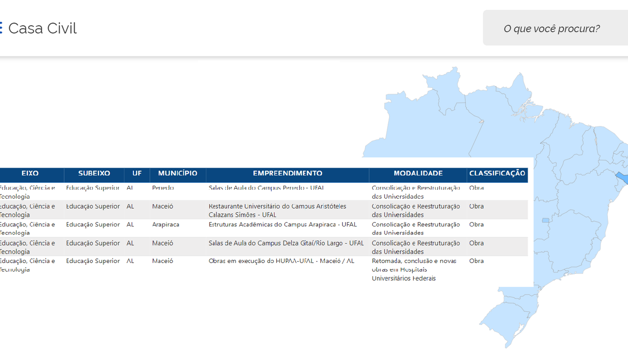 Tonholo reforça que esses recursos não vão resolver todos os problemas da Ufal, mas vão fazer a diferença e chegam como uma boa carga de energia para que a máquina continue funcionando. “O PAC inclui obras fundamentais para a gente garantir a permanência dos nossos estudantes na Universidade - o campus em Penedo, sala de aula em Arapiraca e no Ceca (Campus de Engenharia e Ciências Agrárias] e ampliação das instalações do nosso Restaurante Universitário do A.C. Simões [Campus]. Conseguir essas obras no PAC é um avanço!”, confirmou.