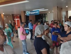 Diante da suspensão dos serviços, os pacientes renais estão sem atendimento. Mais cedo, eles procuraram o setor de ouvidoria da unidade, mas o órgão estava fechado. Um grupo de trabalhadores está, neste momento, na porta da direção da unidade dentro do prédio cobrando um posicionamento. Os pacientes estão se alimentando na principal recepção do hospital, que embora tenha sido notificado diversas vezes, não deu qualquer retorno ao Sindicato ou aos profissionais.