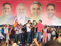“Uma ampla aliança. Os homens e mulheres que estão aqui nesse palanque são os que merecem o nosso trabalho, são os que merecem o nosso empenho, são os que merecem levar voto para vereador e para vereadora no dia 6 de outubro e eu tô contando com cada um de vocês”, afirmou Rafael, ao lado dos presidentes das legendas e do governador Paulo Dantas e do ministro Renan Filho.