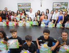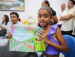 As crianças atendidas pelo projeto “Minha Arapiraca é assim”, desenvolvido pelo Serviço de Convivência e Fortalecimento de Vínculos (SCFV) dos Centros de Referência em Assistência Social (CRAS) de Arapiraca, entregaram nesta segunda-feira (13), ao prefeito Luciano Barbosa, os livros produzidos durante as atividades nas comunidades.