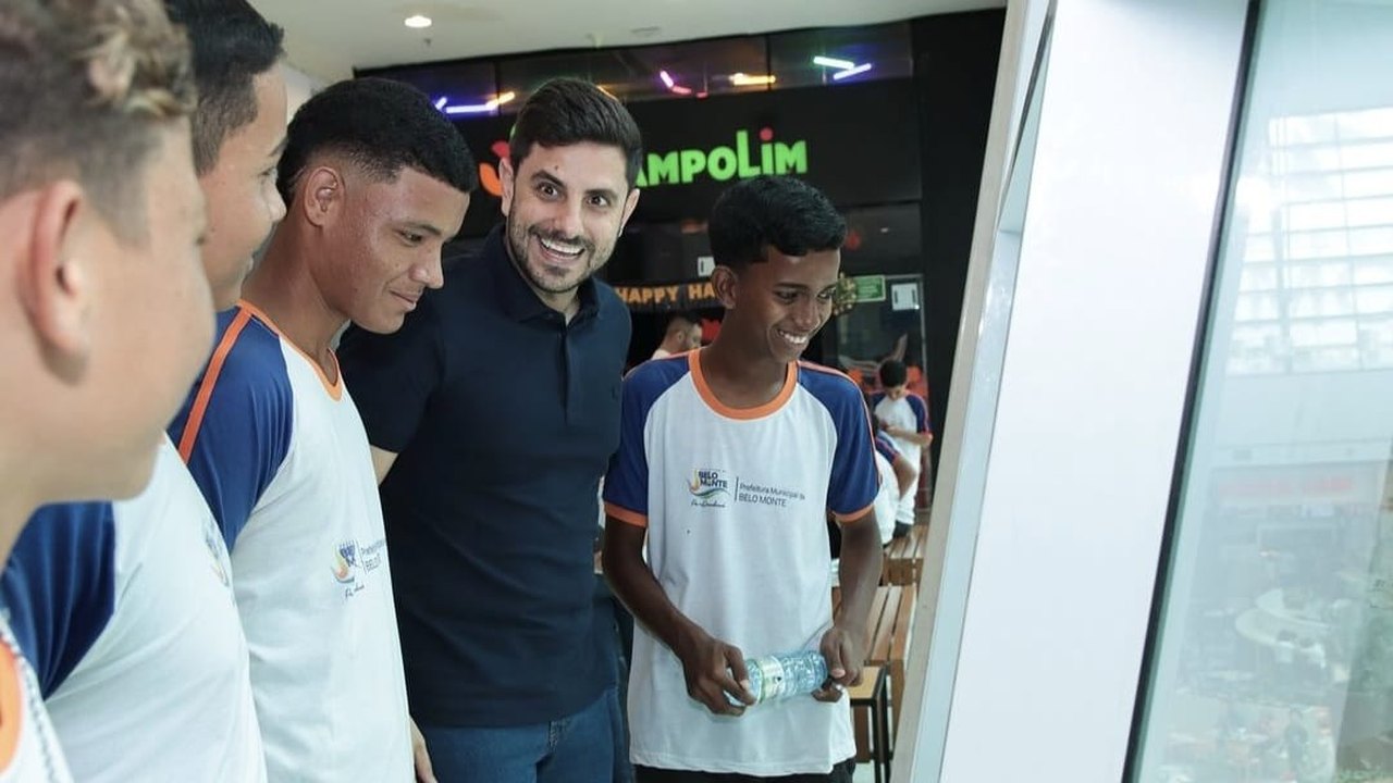 Alunos de Belo Monte visitam exposição no shopping Pátio ao lado do prefeito Dalminho