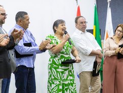 A ex-prefeita Célia Rocha também recebeu a honraria que foi concedida em reconhecimento a dez personalidades e lideranças locais que contribuíram com o desenvolvimento educacional e social do município.