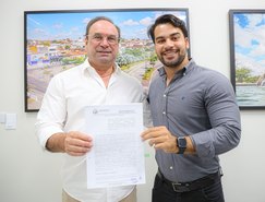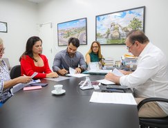 prefeito Luciano Barbosa e a secretária de Desenvolvimento Social, Fabrícia Galindo, assinaram o Termo de Fomento, nesta quinta-feira (7), para o repasse de R$ 400 mil à Associação de Apoio aos Portadores de Câncer de Arapiraca (AAPC).
