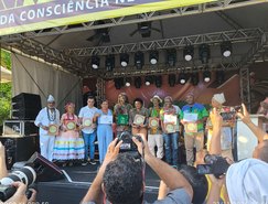 O Selo Brasil Quilombola foi entregue ao secretário municipal de Igualdade Racial, Manoel Santos (Bié), pela ministra nacional da Cultura, a cantora Margareth Menezes.